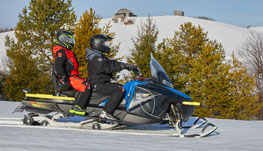 Снегоход энергономичен: перед поездкой можно легко отрегулировать высоту руля и жесткость подвески. Тепла и комфорта добавят подогрев рукояток и курка газа, розетки для обогрева визеров на шлемах водителя и пассажира. Ручки для пассажира оснащены ветро-защитой и подогревом. Возможность за счет съемного модульного сидения увеличить багажное пространство. Приборная панель оптимально информативна для дальней поездки — все это делает «Фронтьер 1000» идеальным снежным крузером.