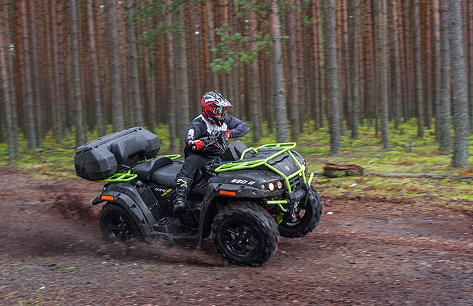 Продуманная эргономика обеспечивает высокий уровень комфорта как для водителя, так и для пассажира. У модели двухуровневое сиденье, благодаря которой пассажиру гарантирован хороший обзор. Для дальнего путешествия вдвоём у ATV предусмотрены передняя и задняя багажные площадки грузоподъёмностью 40 и 80 кг соответственно и два перчаточных ящика объёмом 9 и 16 литров. В базовую комплектацию входит фаркоп. Изменилось передаточное число редукторов – благодяря этому увеличилась максимальная скорость.