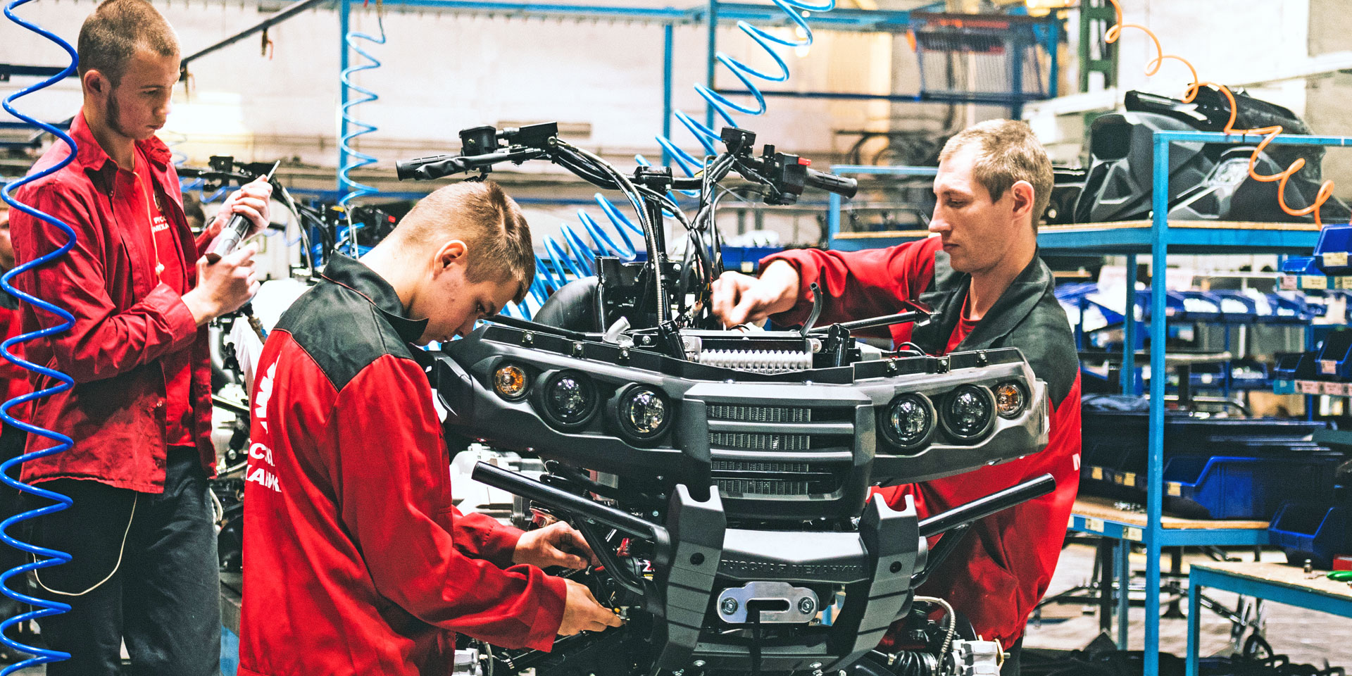 Вместе с партнерами — Уфимским и Рыбинским авиационным техническим Университетом, МГТУ имени Баумана — «Русская механика» разрабатывает новые модели снегоходов: сверхлегкий, легкий, арктический, в том числе с электрическим приводом. Электрическая тема активно продвигается при конструировании колесной техники — квадроциклов 4x4 и 6x6.