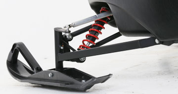 Снегоход максимально устойчив. Центр тяжести занижен, а ширина передней рычажной подвески с лыжами составляет 880 мм — почти как у большого снегохода. Ширина гусеницы 257 мм, длина 1728 мм. Длинноходная задняя подвеска с пружинами кручения настроена под комфортную езду.